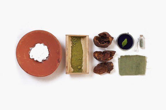 These relaxed fit trousers embody the spirit of the new era gentle man - gentle woman and the gentle gender non binary being - channeling a unique energy which holds : a sartorial touch, the utility of workwear and a tropical flair - in equal parts. This color is achieved through a careful blend of indigenous ingredients from the Indian landscape including : myrobalan flowers and natural indigo. This takes 6 artisans 60 hours to bring the garment to life. Color may slightly vary due to the nature of the small batch natural dyeing.
