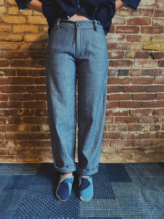 These relaxed fit trousers embody the spirit of the new era gentle man - gentle woman and the gentle gender non binary being - channeling a unique energy which holds : a sartorial touch, the utility of workwear and a bold flair - in equal parts.