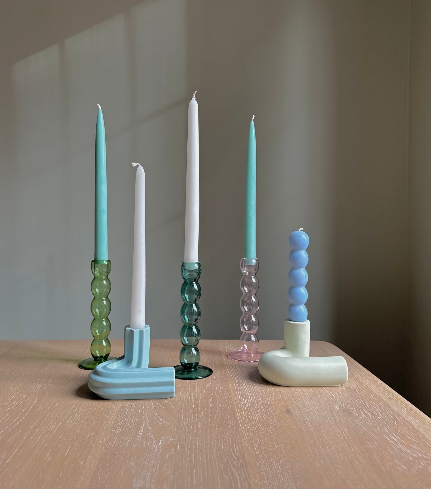 Available in two designs and five colors, the Templo Candleholders are ideal for displaying alone or creating several combinations in many different spaces to create a cosy atmosphere.