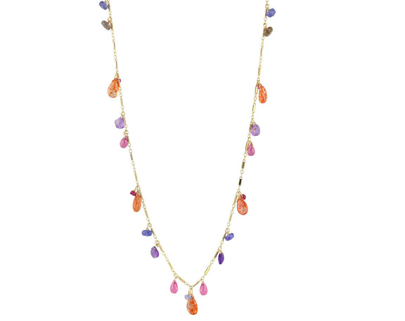 Sunstone, tanzanite, sapphire, and tourmaline on gold filled chain
