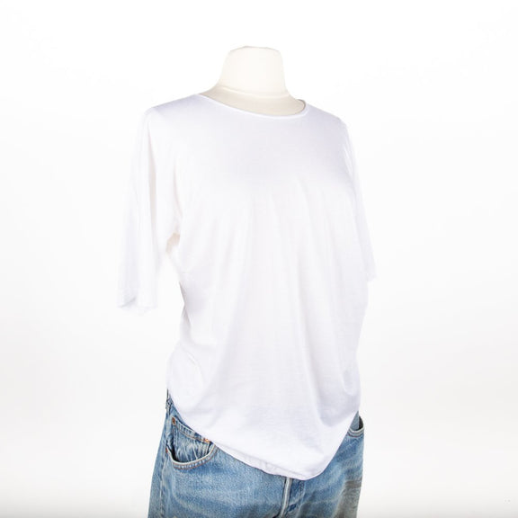 This lightweight cotton tops are the perfect unisex staple, featuring a scoop neck and a slightly sheer fine cotton weave. Double Bull, the shirt's maker, has been a staple in China for decades.
