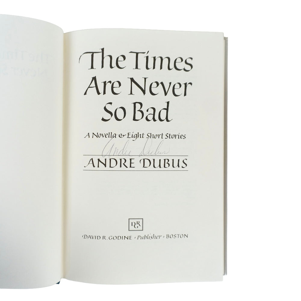 " The Times Are Never So Bad" By Andre Dubus, is a collection of stories of men and women attempting to live together, to tell the truth as they see it (or don’t see it), and to survive the crises, and sometimes the violence, of domestic life. Now included in Andre Dubus's Collected Short Stories & Novellas this original edition includes A Father’s Story, as well as the novella The Pretty Girl. Upon its publication in 1991, Tobias Wolff wrote, “'It is a world of secrets,' says the narrator of A Father’s Story. Andre Dubus’s fine new collection is made of those secrets, observed with an art that is luminous with honesty and generosity. Dubus is interested in essential things―in the shadowy powers that circle our lives and the slender resources of faith and love with which we try to keep them at bay.”