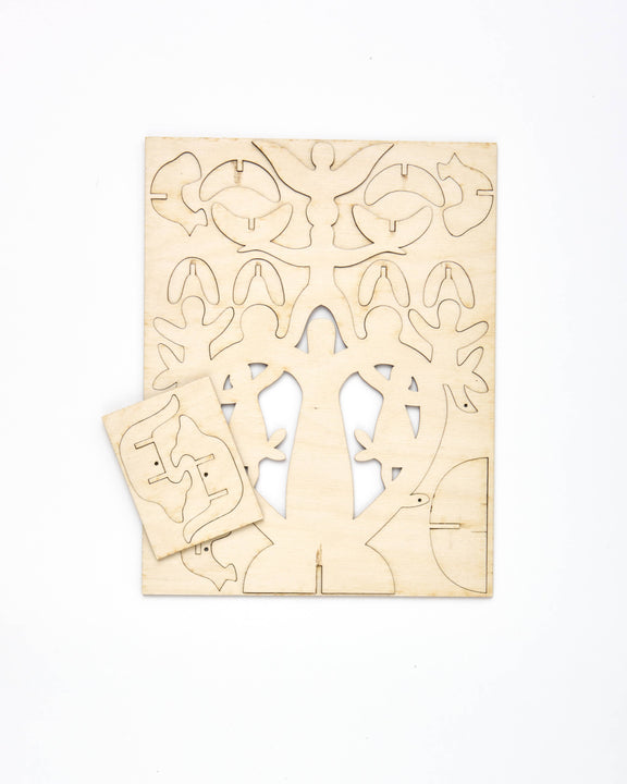 This kit was inspired by the Tree of Life (Arbol de la Vida) collection at the Museum of International Folk Art in Santa Fe, New Mexico. Pictured alongside this tree are two examples of trees of life in museum's collections. The designs of the trees of life are as diverse as the artisans who make them and the villages in which they live. In general trees of life depict the creation story and feature animals, angels, and other characters. Trees of life are made and given as symbols of abundance, fertility and joy.