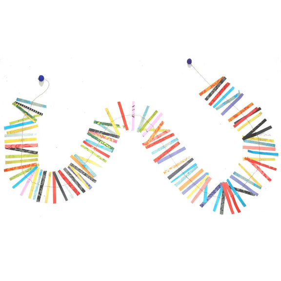 Introduce a touch of whimsy to your space with a stunning paper garland featuring colorful stripes. These banners are expertly handcrafted in Nepal by local artisans, using the bark of the Daphne plant, also known as Lokta. Enjoy the intricate workmanship and the charm it brings to any space, perfect for kids' rooms or any part of your home.