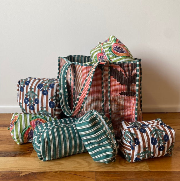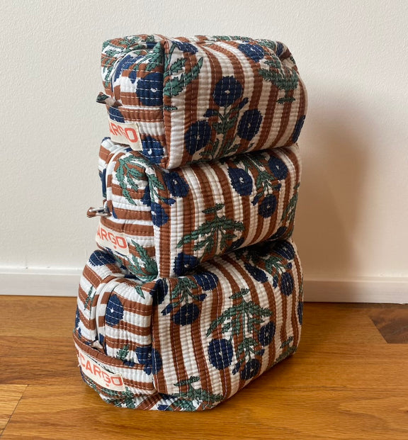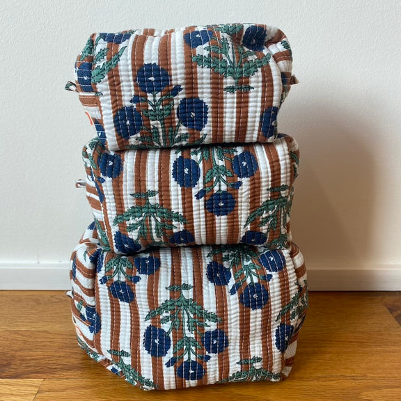 These functional quilted dopp kits come in 3 sizes, with a zippered opening and a small interior pocket. Perfect for gifting, storage or travel.